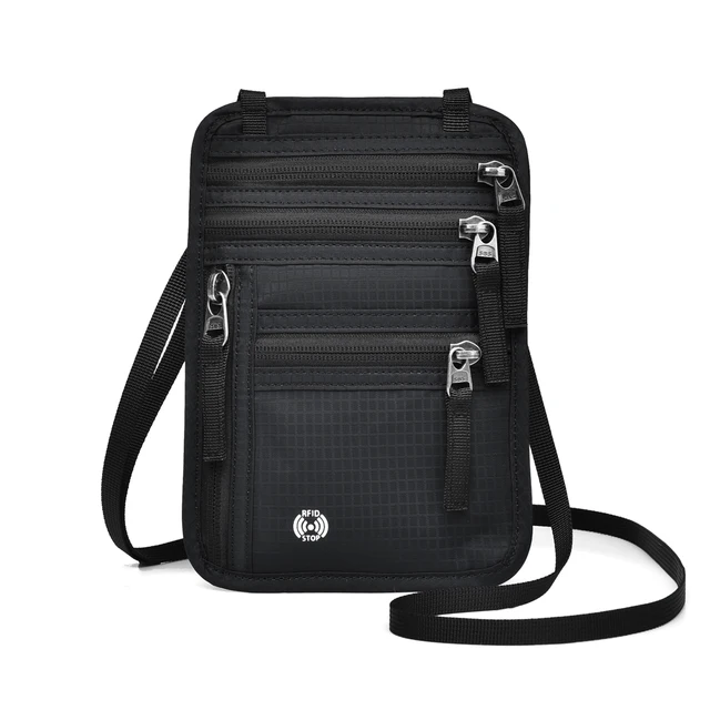 Nylon Waterproof Anti-Theft Card Holder Travel Document Pouch RFID Blocking Neck Wallet with RFID Protected Passport Storage